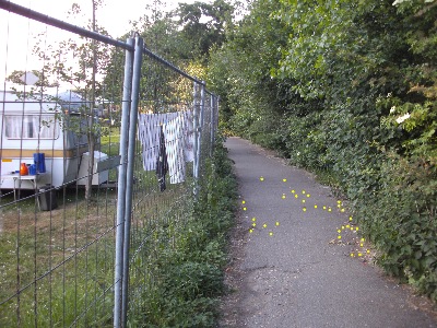 Am Rande eines Campingplatzes, über den Gartenzaun
