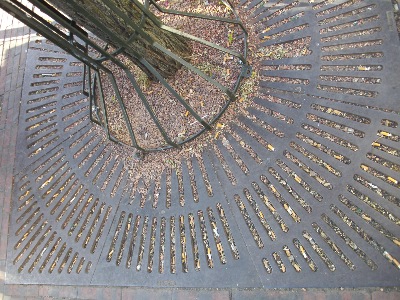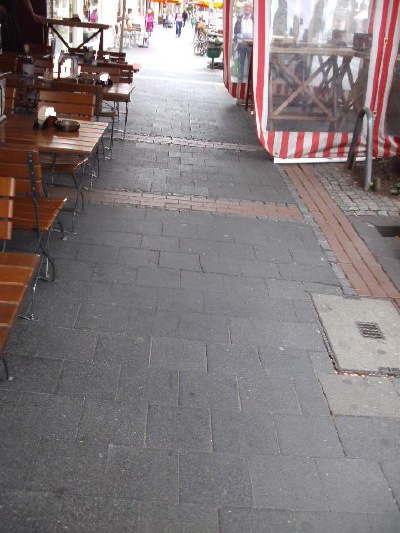 Sichtachse aus der Perspektive von Passanten, die diese Rauchschleuse im öffentlichen Strassenraum passieren müssen.