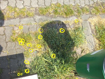 Im unteren Bild sind die auf der Fotodatei erkennbaren Kippen farblich markiert hervorgehoben.