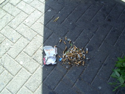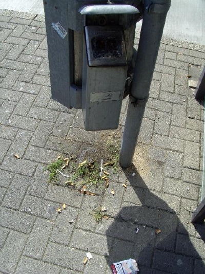 Trotzdem landen Kippen auf dem Boden und prägt sich nicht nur im witterungsgeschützten Bereich des Wartehäuschen durch Asche und Tabakreste ein stinkender Belag aus.